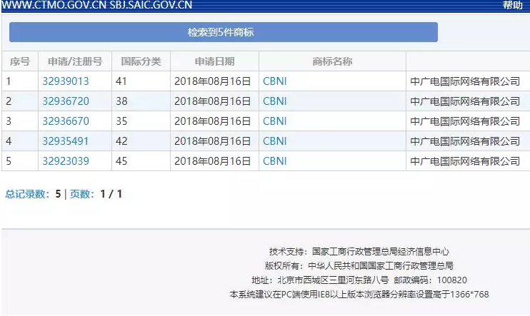 热烈祝贺中广电国际网络有限公司“CBNI”商标注册成功